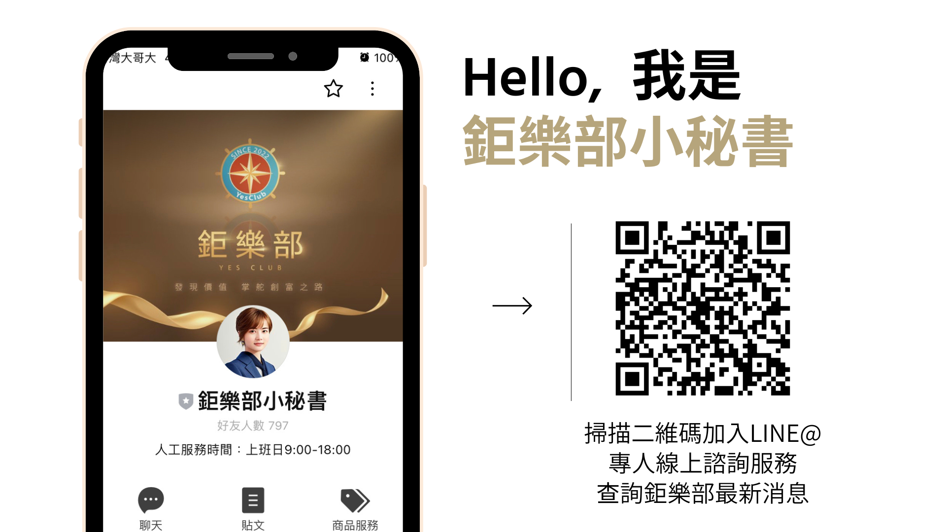 欲了解鉅樂部入會費用方案,或詢問課程相關問題,歡迎掃描二維碼,或點擊加入好友加入「鉅樂部小秘書LINE@」由專人為您提供免費線上諮詢服務。鉅樂部會員採付費入會制,入會後需回傳個人資料建檔,即可在訂閱期間享有獨家會員權益。