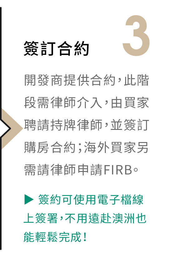 | 7. 房屋保險 | 依房屋情況和保險公司而定,一般公寓的物業管理費已包含房屋保險費,別墅則需要自行購買,約$1,500~$2,000澳元/年。 | |