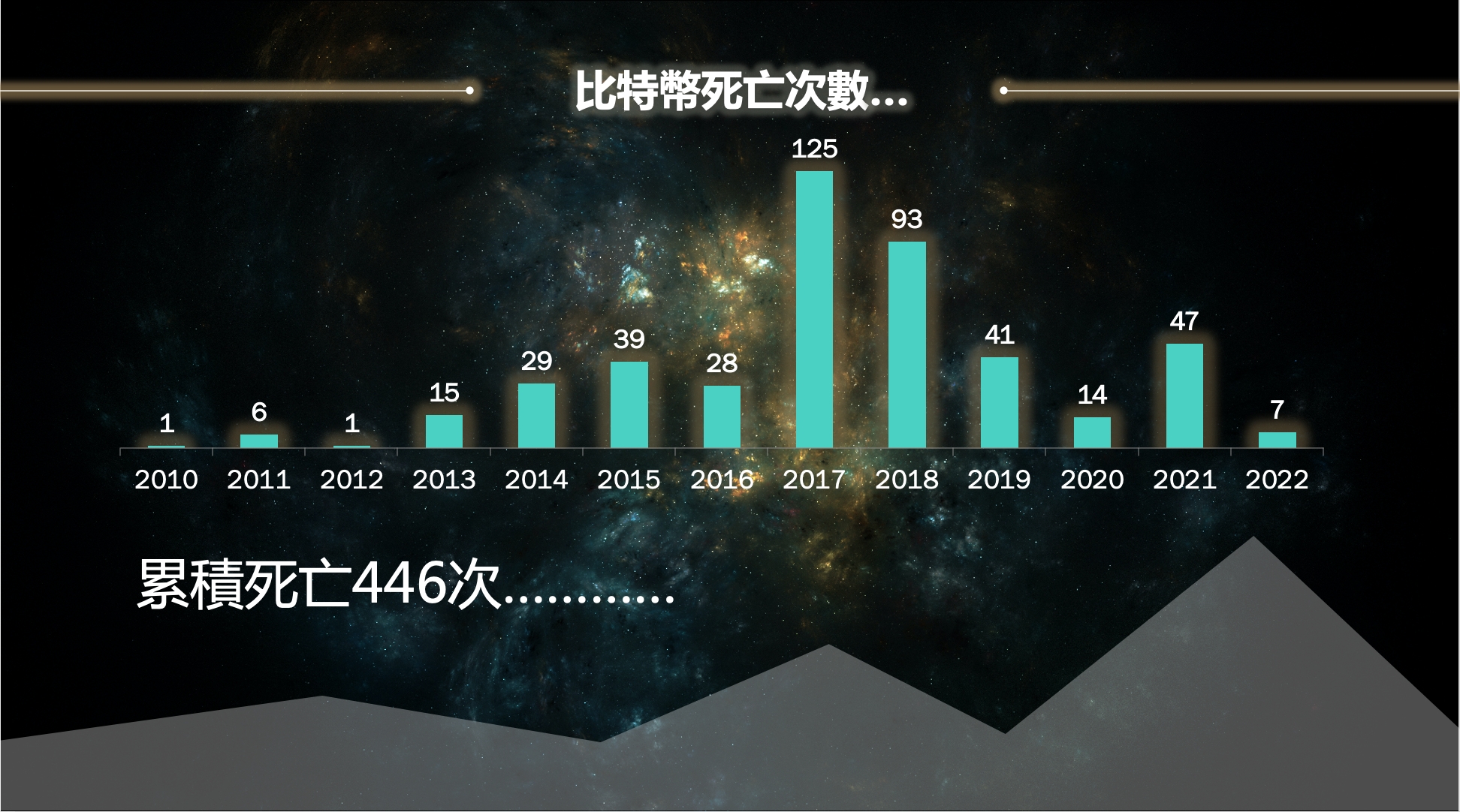 ▲自2010年起比特幣已經被媒體發過446次訃聞(不含中文語系),經13年仍不斷在市場創下天價