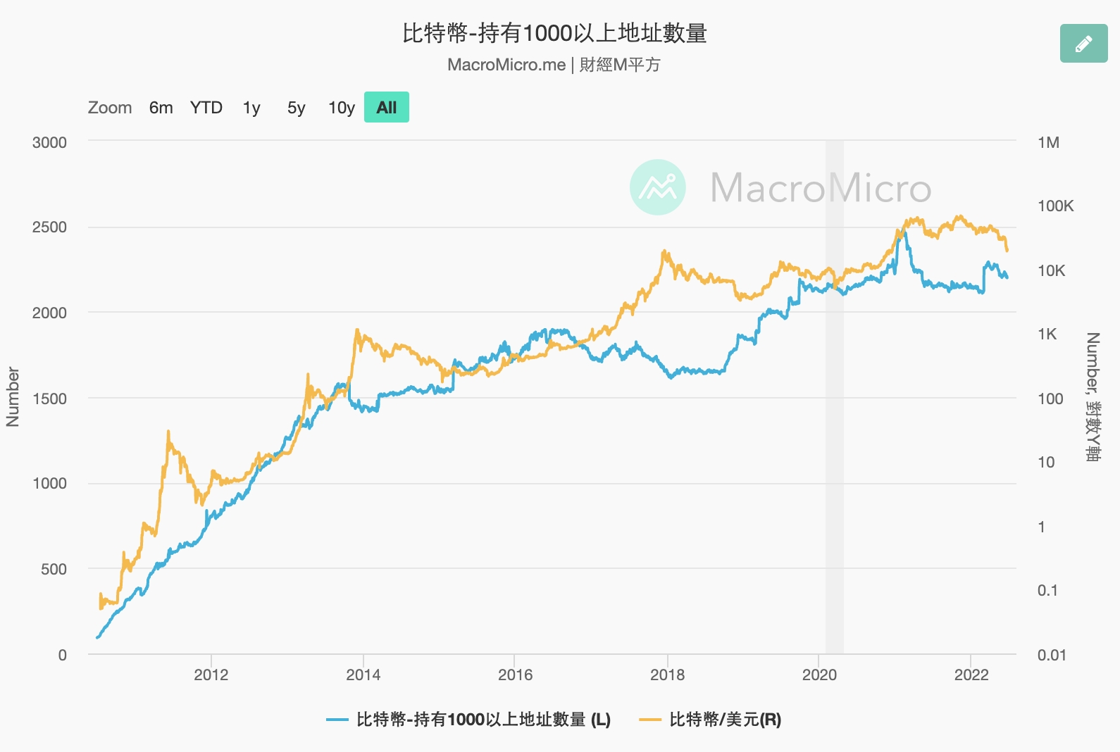 從歷史數據來看,比特幣問世13年,每逢幣價上漲,持有1000顆以上比特幣大戶數量便減少,反之幣價下跌,持有1000顆以上比特幣大戶數量便明顯增加,2022年迎來來第六次牛熊轉換,如果相信比特幣的牛熊循環慣性,「熊市買幣、牛市賣幣」已然是加入幣圈的財富密碼,在享受加密貨幣帶來的暴富機會前,必先有一番貪婪與恐懼的交戰。