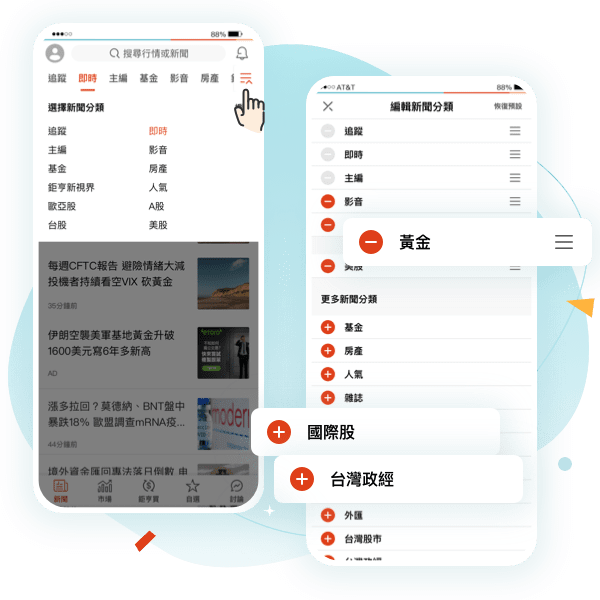 將您首要關心的指數、匯率、公債等類別調整排序,以及自訂顯示更多商品項目,資訊更全面